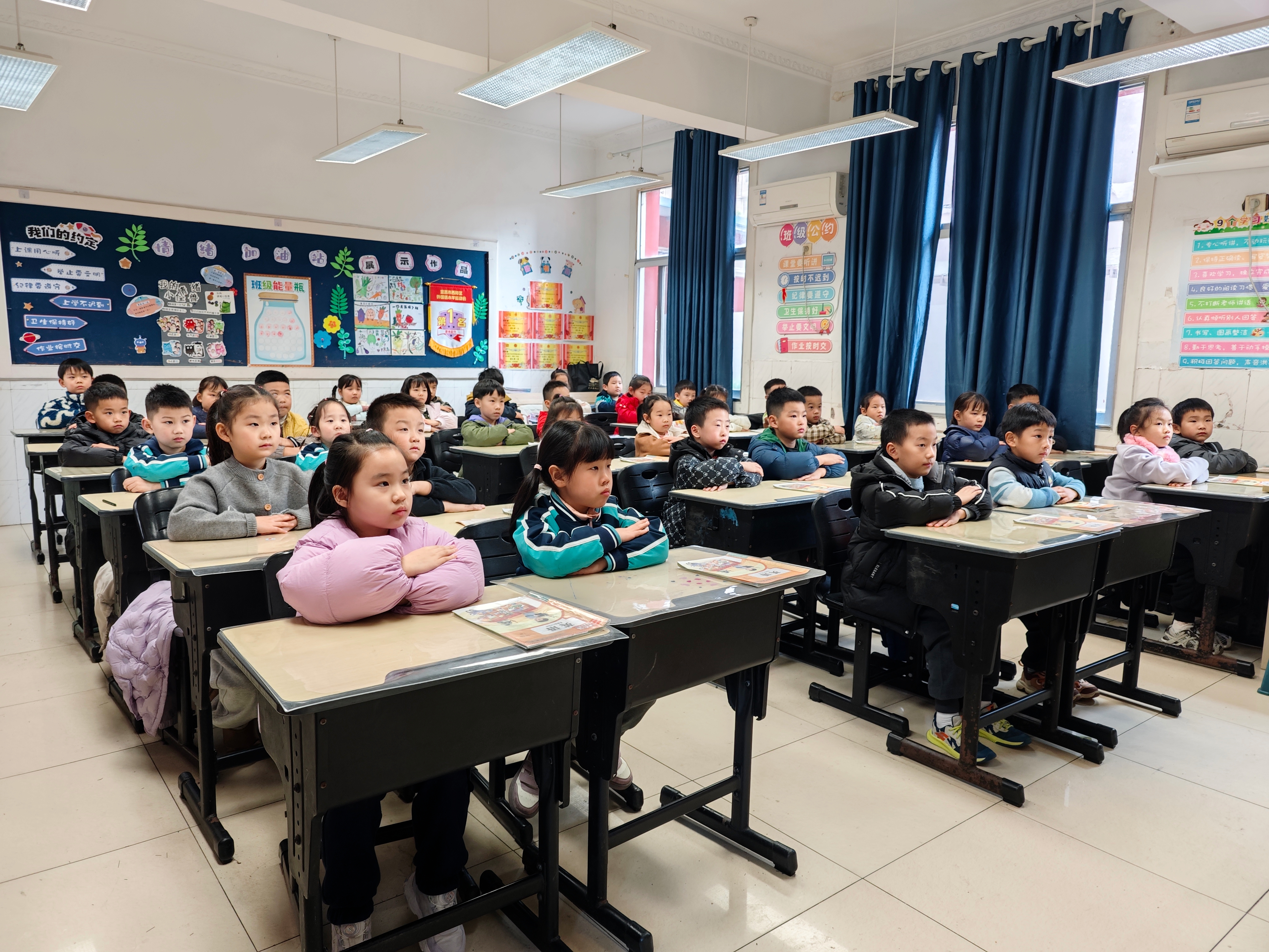 全体一年级教师全程观摩早读、课堂教学及大课间活动,全面检验学生常规养成成效。早读时,教室里书声琅琅;课堂上,学生们专注高效;大课间,学生列队整齐,能做到 “快、静、齐”,尽显蓬勃向上的精神风貌。