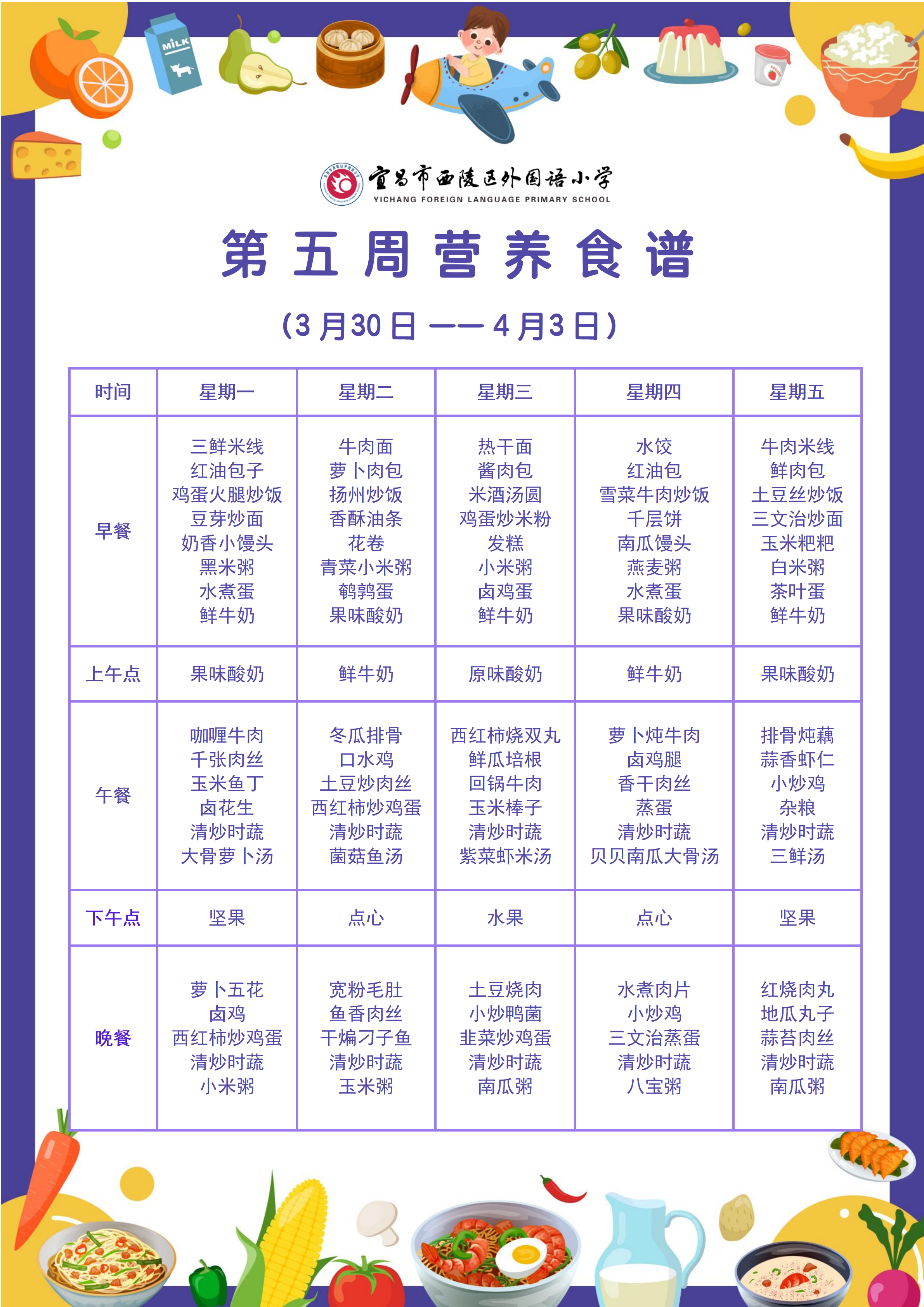 宜昌外小2026年春季学期第五周营养食谱